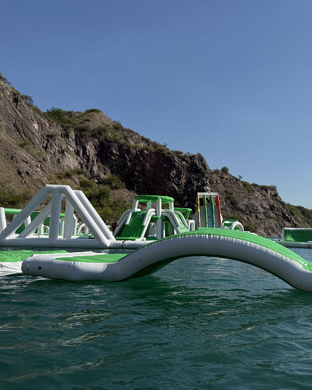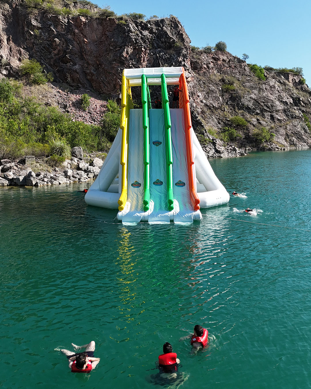 Mi hija de 6 años disfrutó muchísimo la experiencia, en gran parte gracias a que utilizó zapatillas acuáticas de neoprene con suela de goma. Este detalle hizo una gran diferencia: no resbalaba tanto como quienes estaban descalzos y pudo moverse con mayor seguridad entre los inflables. - Sol pleno